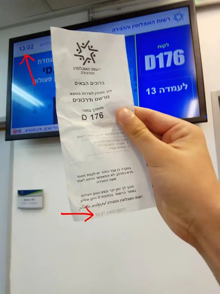 אמ;לק – כמעט 3 שעות המתנה במשרד הפנים כדי לקבל שירות בסיסי לאזרח.