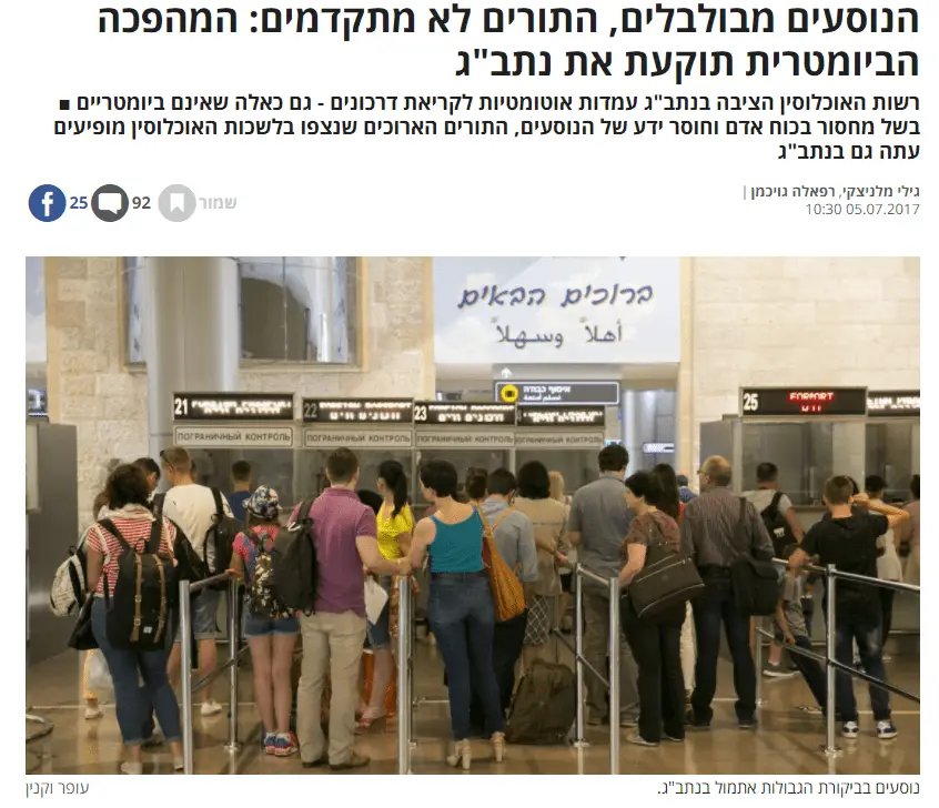 אז למה יש תור ארוך? בשדה התעופה בבן גוריון יש מעט עמדות ביומטריות אשר לא עומדות בעומס..ולכן ביקורת הדרכונים ממש קורסת.