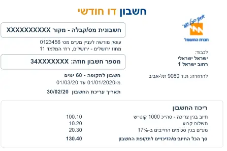 - תחילה נא לוודא שיש לכם חשבון חוזה ומספר חשבונית – נמצא בספח שלכם שקיבלתם