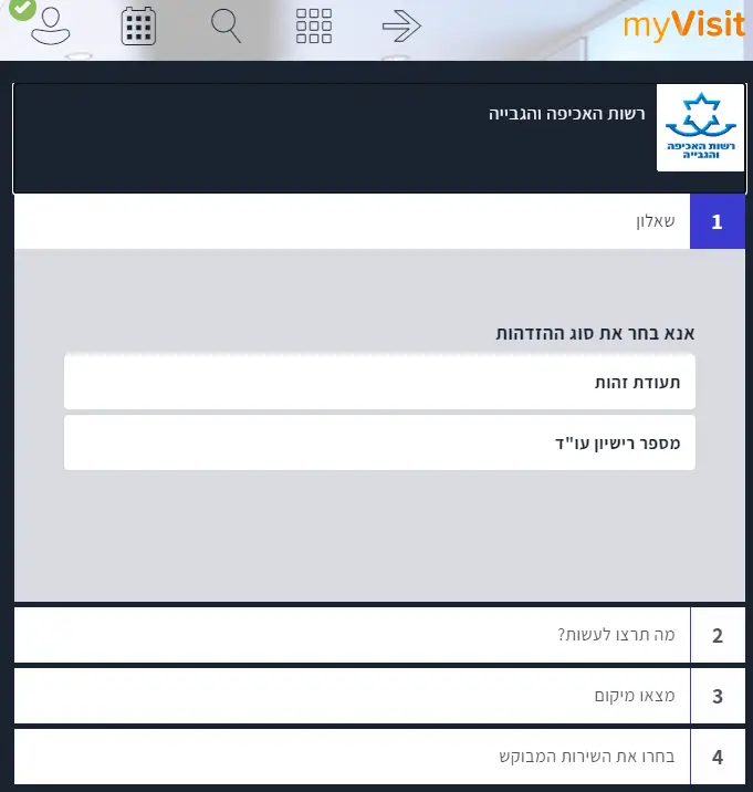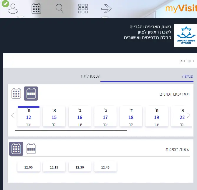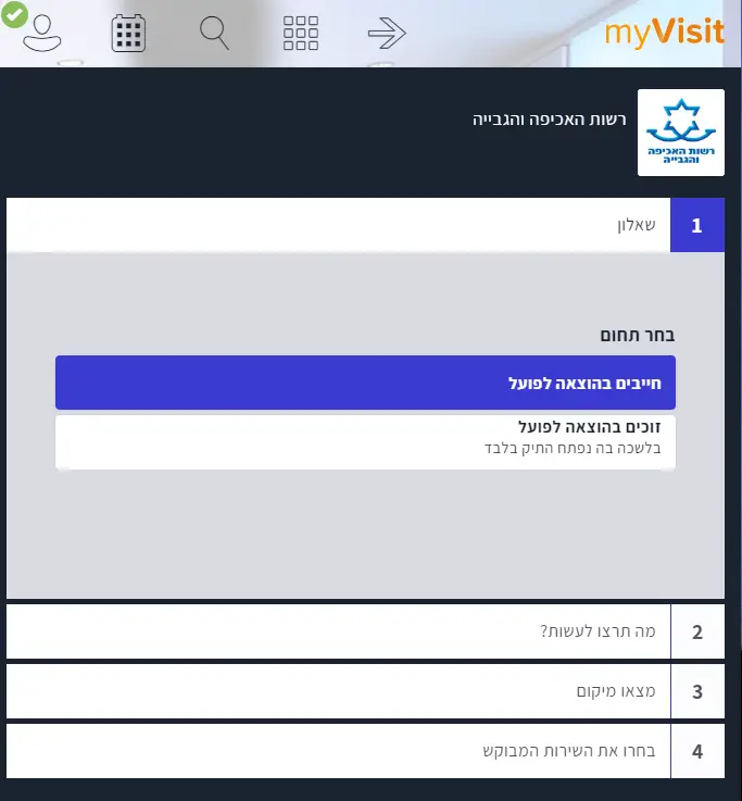 נכנסים לאתר האינטרנט של קביעת התורים להוצאה לפועל הנקרא MYVISIT.