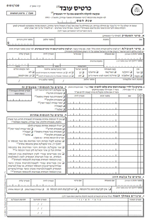 • כולל את הפרטים האישיים של העובד, את ההכנסות שלו ואת הבקשות שלו להקלות והטבות במס.