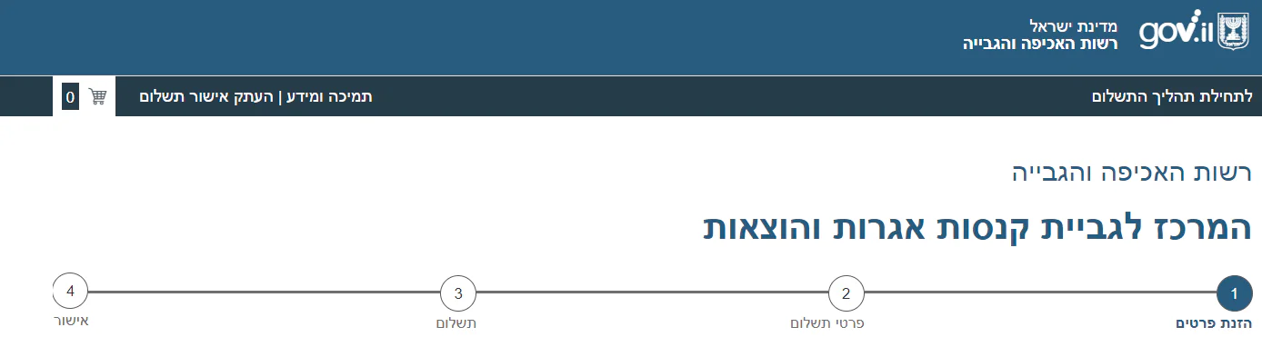 המתינו בסבלנות עד שהקישור ייפתח. - תצטרכו לבצע זיהוי פרטים אישיים – תעודת זהות / דרכון / רישיון וגם לציין את מספר הדו”ח או הקנס שקיבלתם כולל מספר “תיק מרכז” אשר מופיע על גבי דרישת התשלום שהגיע אלייך בדואר לאחר קבלת הקנס.